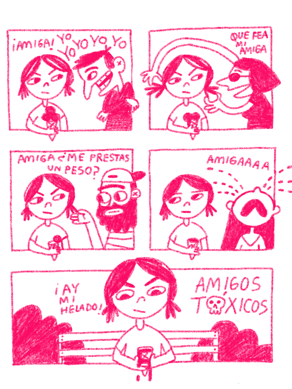 Tal vez para algunos yo he sido la amiga tóxica y lo que me molesta de otros son mis propios defectos expresándose en el cuerpo de alguien más. Si no hubiera toxicidad en mí, no me habría dado el tiempo de juzgar a otros y categorizarlos en una lista burlona que justifica -a medias- mis pocas herramientas para lidiar con el mundo. Acepto lo que me toca y también lo que eso conlleva. Una vez que uno empieza a identificar el rechazo y comprueba que nadie se muere de eso, se vuelve más sencillo soltar los “no”. Con la práctica, cada vez es más corto el camino entre el “sí, hay que vernos luego” y el “no quiero, gracias.”